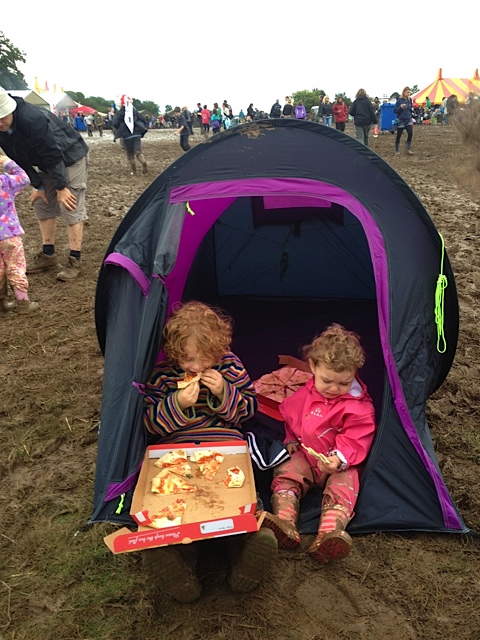 The food was fab. The big hairy northern one and I had a curry from Malik’s, which was just gorgeous. Sadly the kids wanted Pizza which took 40mins, and the noodle people hadn’t made it; understandable that they couldn’t get a full range of food in due to the mud. We took a little pop up tent just in case which was brilliant, and meant that when it rained heavily the kids could go in it, they ate their pizza in it, and I breastfed Little Dimples in there.