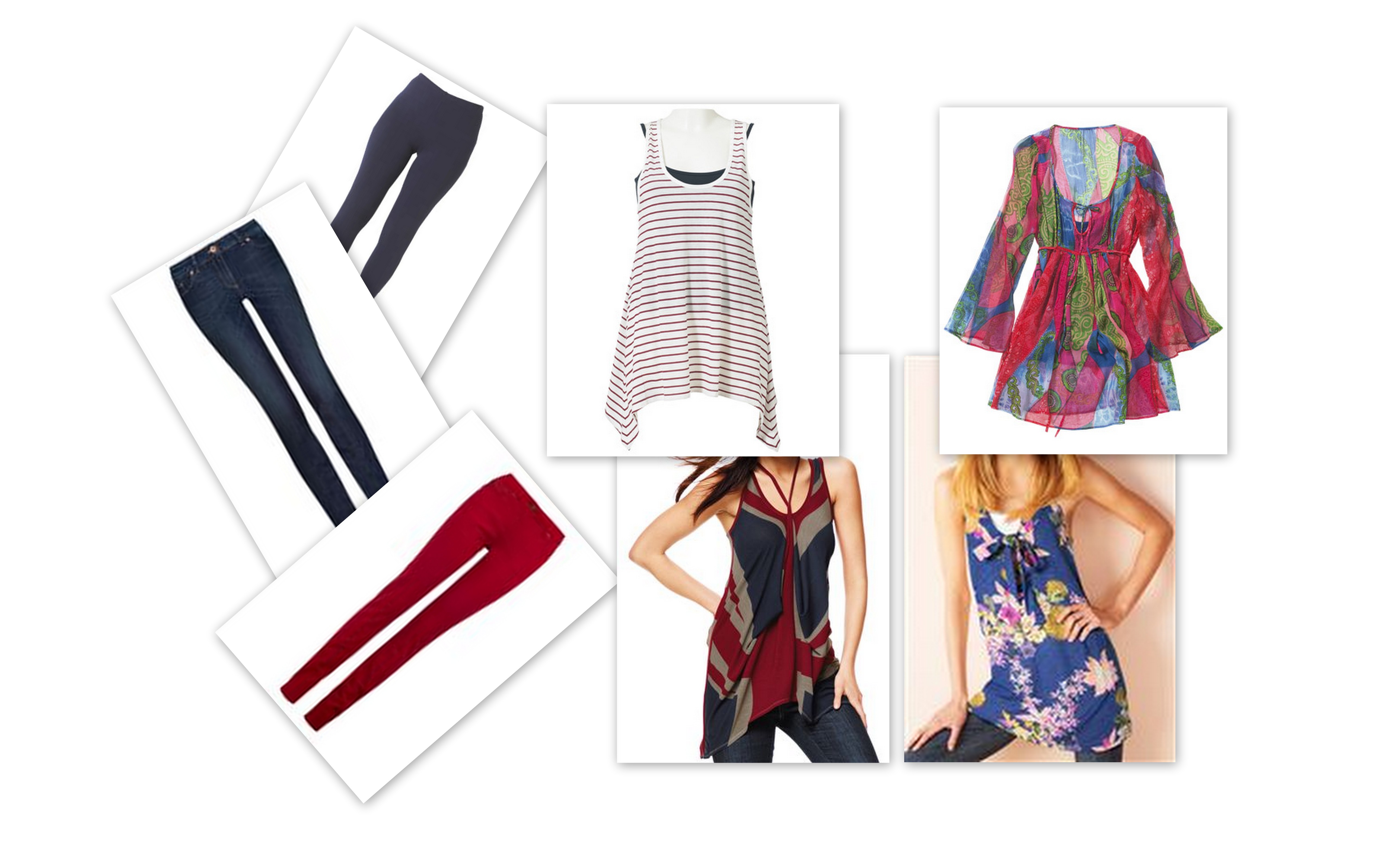 The blue and red (I’m being brave this year) skinny jeans, with the two tunics are from Next.